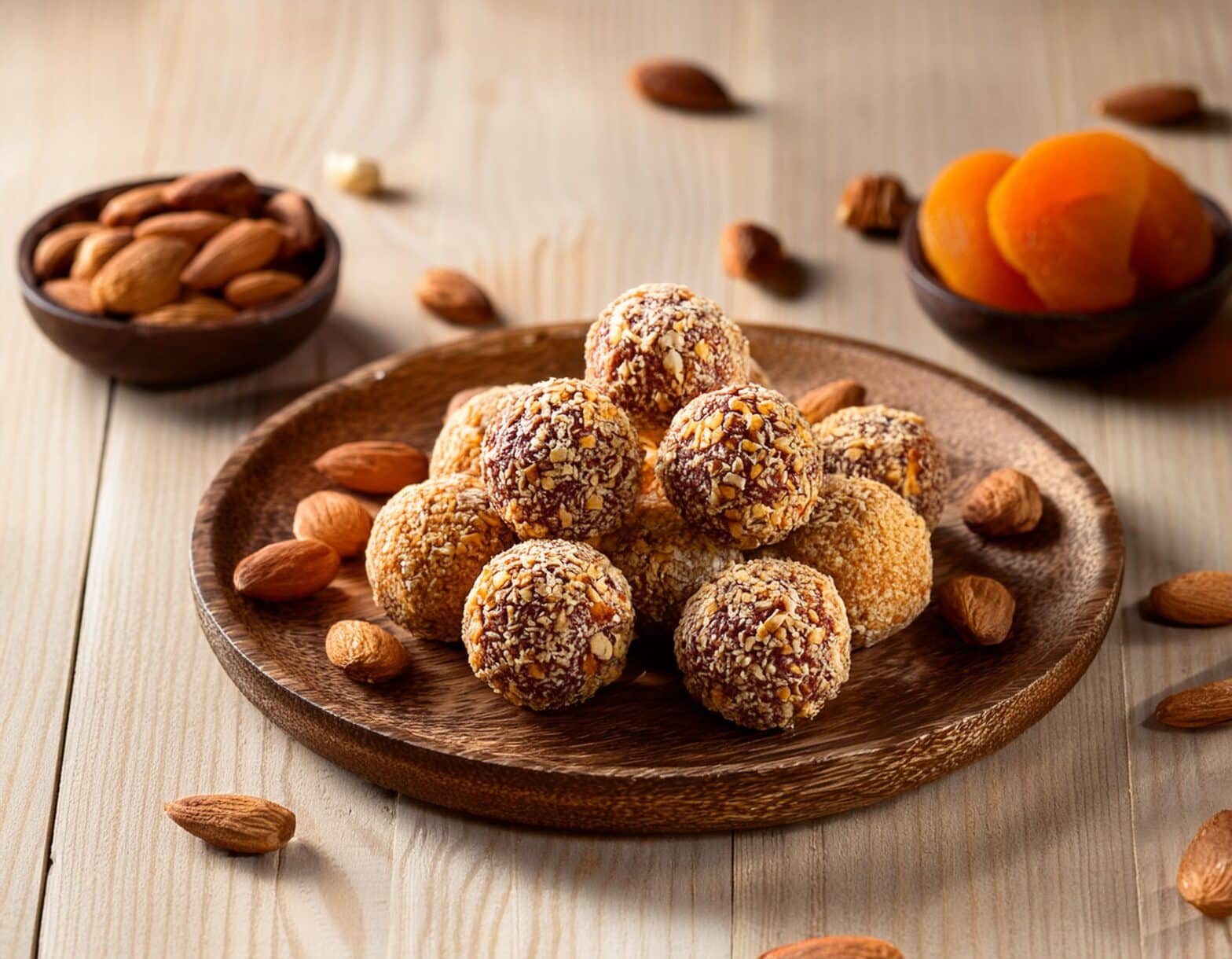 Les ingrédients principaux des energy balls aux amandes et abricots secs sont naturellement riches en vitamines et minéraux, rendant ces encas extrêmement bénéfiques pour la santé. Les amandes apportent du calcium, essentiel pour la solidité des os et des dents, ainsi que du magnésium et du phosphore, nécessaires au bon fonctionnement musculaire et nerveux. De leur côté, les abricots secs sont une excellente source de vitamine A et de fibres alimentaires, contribuant à la vision et à la digestion.